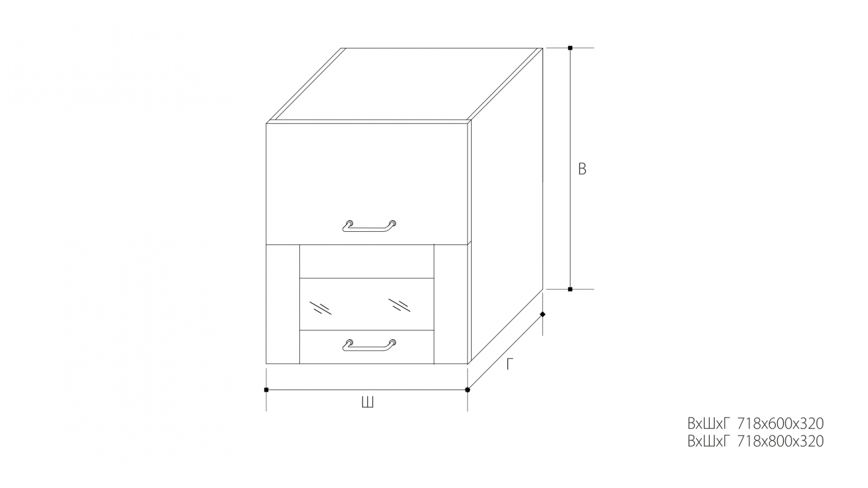 ВхШхГ: 718х600х320 мм.