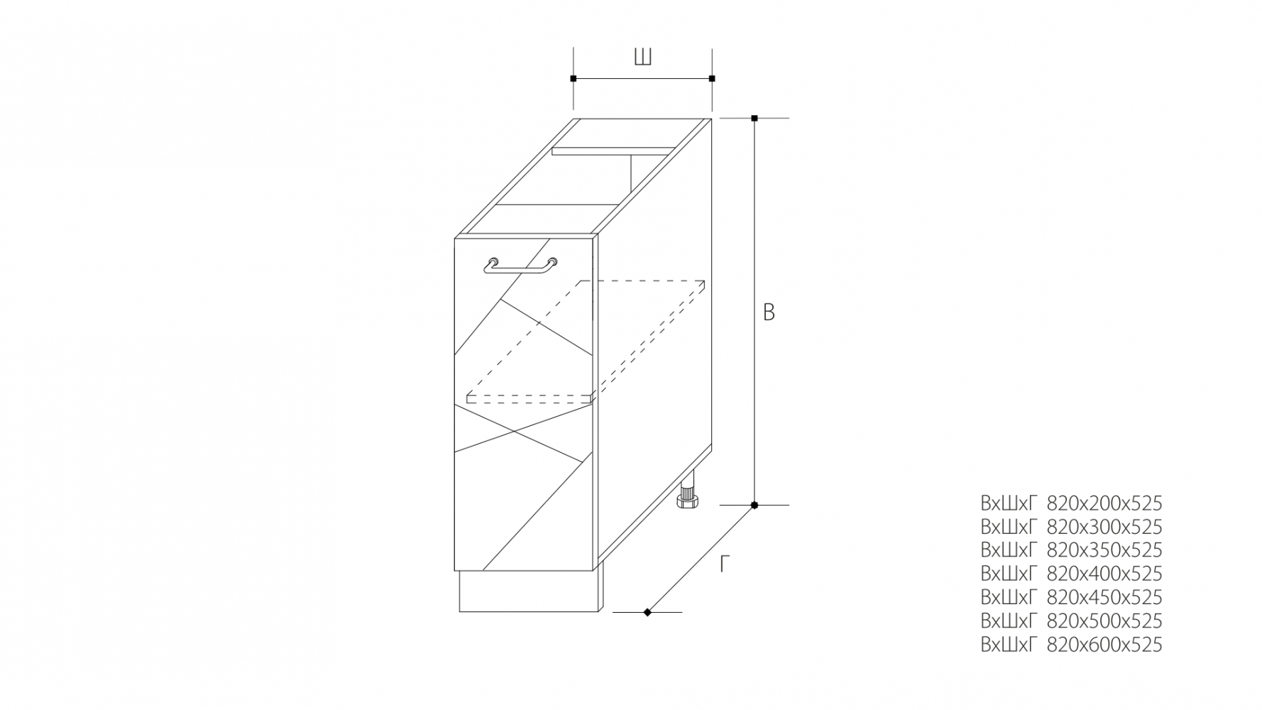 ВхШхГ: 820х400х525 мм.